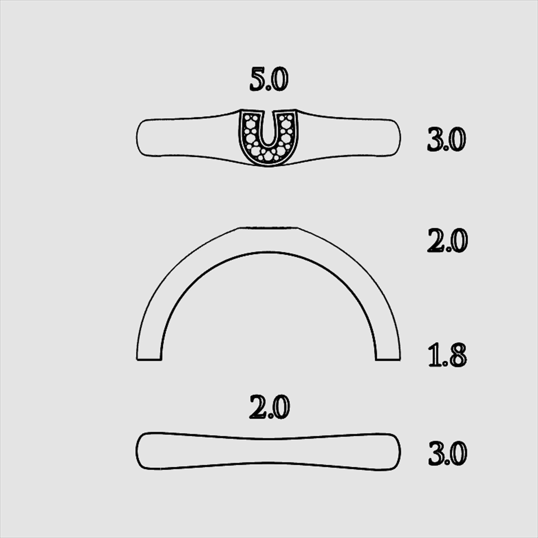 馬蹄のサイズ存在感はありつつ、結婚指輪として日常で邪魔にならないサイズと考えて、正面部分は縦5.0×横4.0㎜で作っています。